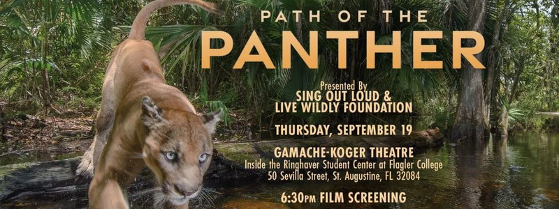 St. Augustine’s Sing Out Loud Festival and the Live Wildly Foundation present a screening of "Path of the Panther" on Thursday, Sept. 19 at 6:30 p.m. at the Gamache-Koger Theatre in Flagler College’s Ringhaver Student Center located on 50 Sevilla St.