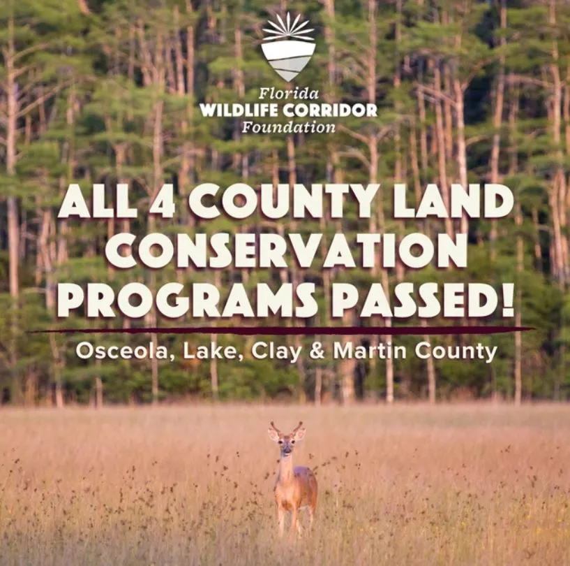 Good news for the Florida Wildlife Corridor — all 4 county land conservation ballot initiatives passed!
