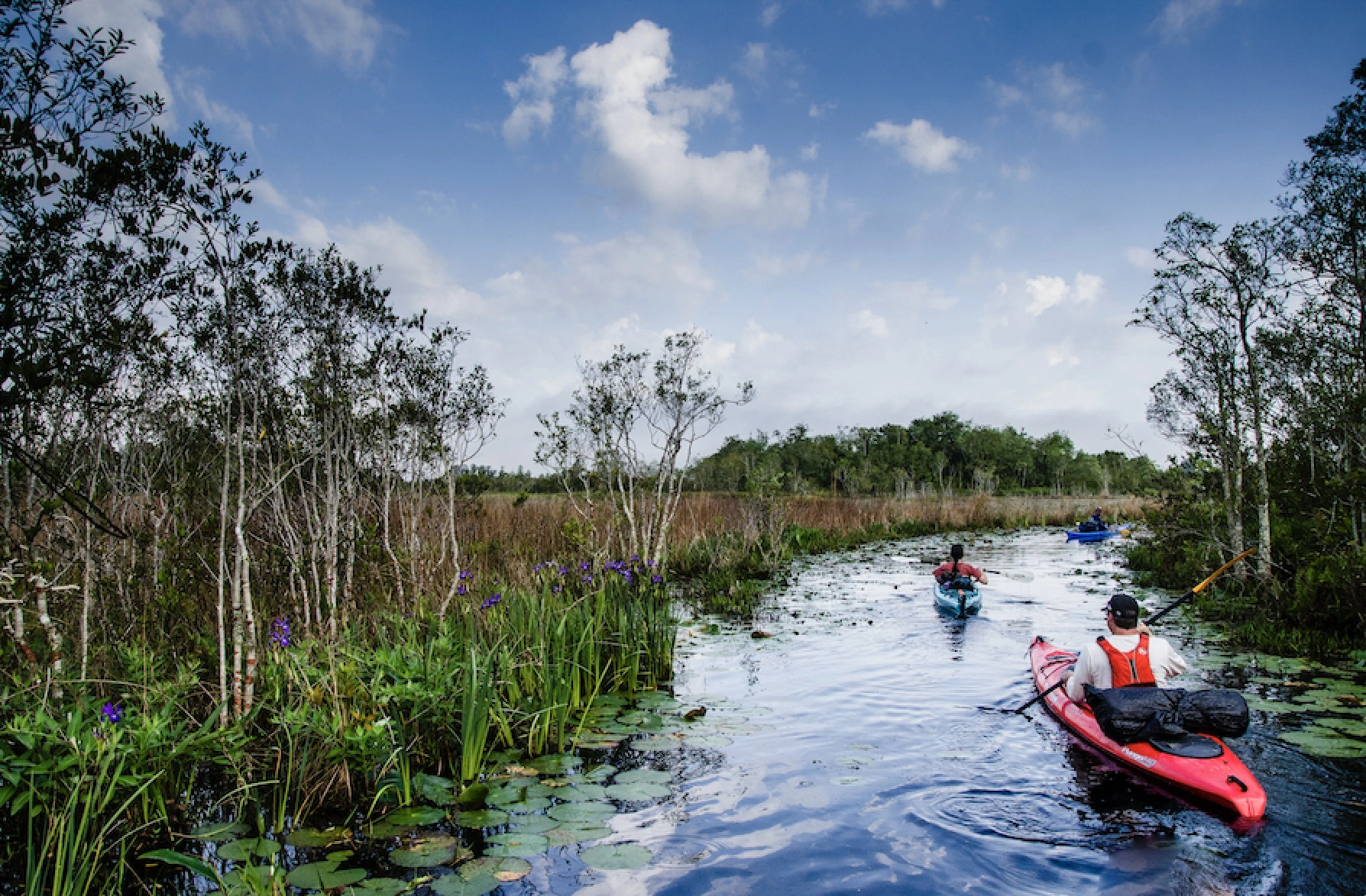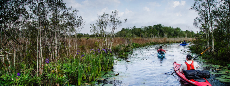 Each day, the paddlers will venture through a mosaic of marshes, prairies, and ancient cypress forests before setting up camp to sleep under the stars, listening to the wildlife that surrounds them.