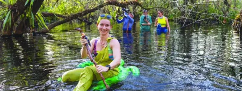 Em Kless, Kenton Beal and Laura Foht bicycled, kayaked, walked, camped — and floated on an inflatable turtle — through private and public lands Nov. 16-22. They traversed areas that are already under conservation, as well as areas that are especially vulnerable to development. They explored a critical portion of the 18 million contiguous acres of the Florida Wildlife Corridor that has many thousands of acres of developments in various permitting stages in Collier and Lee counties.
