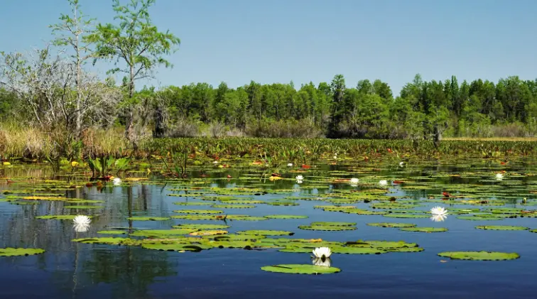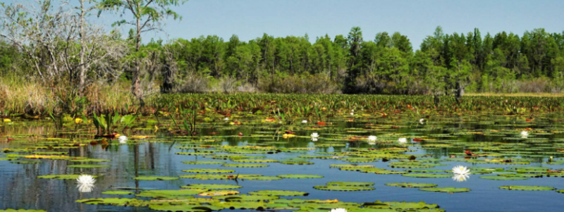 World-renowned for its biological diversity, the refuge supports a vast labyrinth of cypress forests, pine islands, lily ponds, and blackwater channels, containing thousands of species.