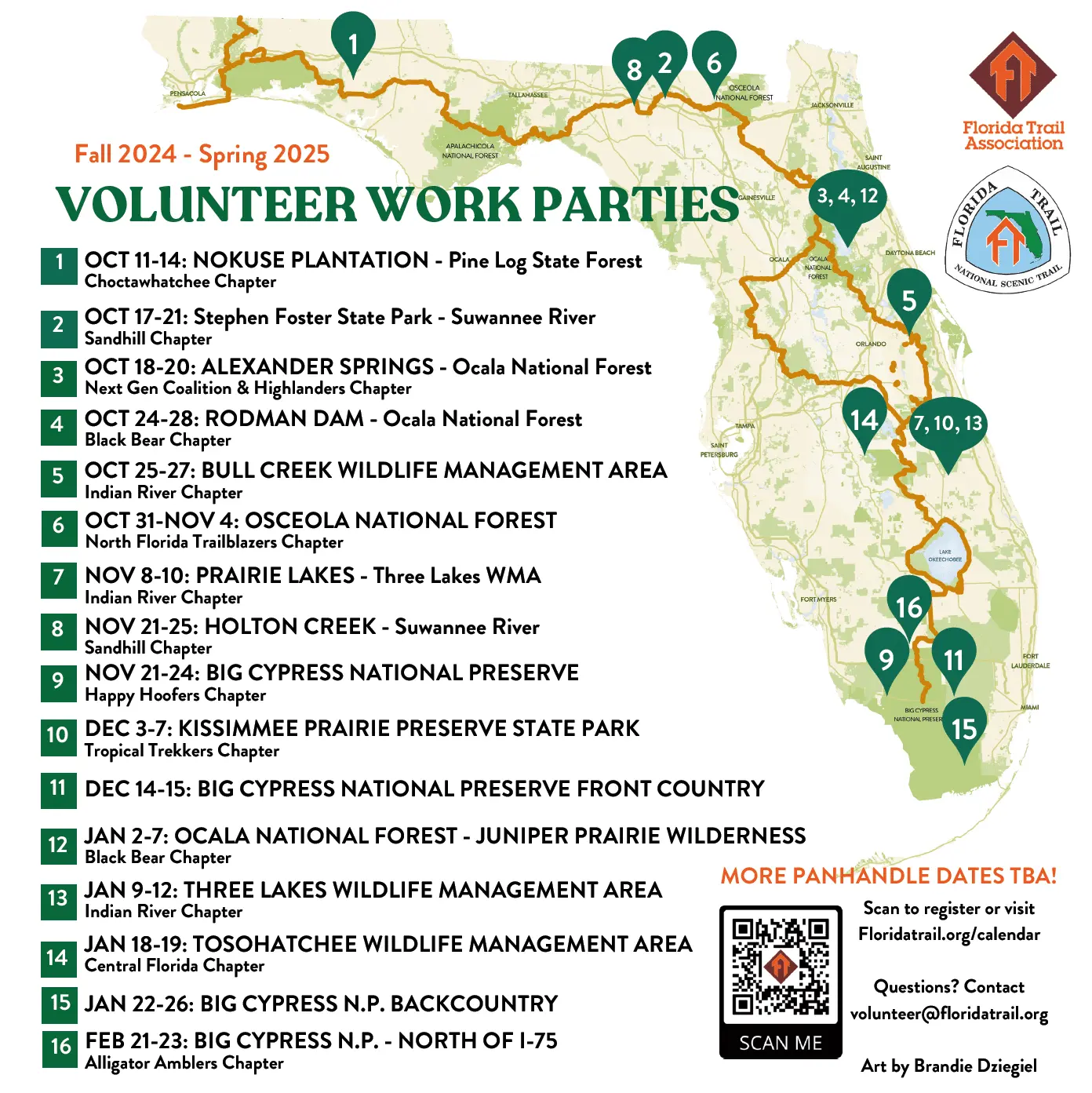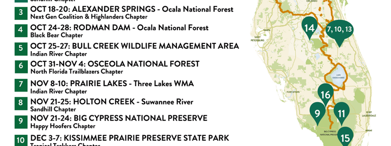 Save the date for Florida Trail Volunteer Work Parties! Join the Florida Trail Assoical for scheduled trail maintenance events where you can meet new people, enjoy great food, and help keep the Florida Trail in top shape. Registration opens soon at floridatrail.org/portal